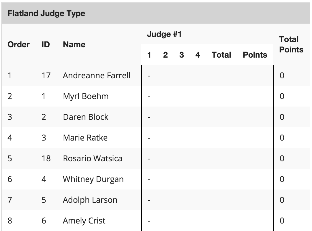 Each Judge will be able to enter results for all competitors.